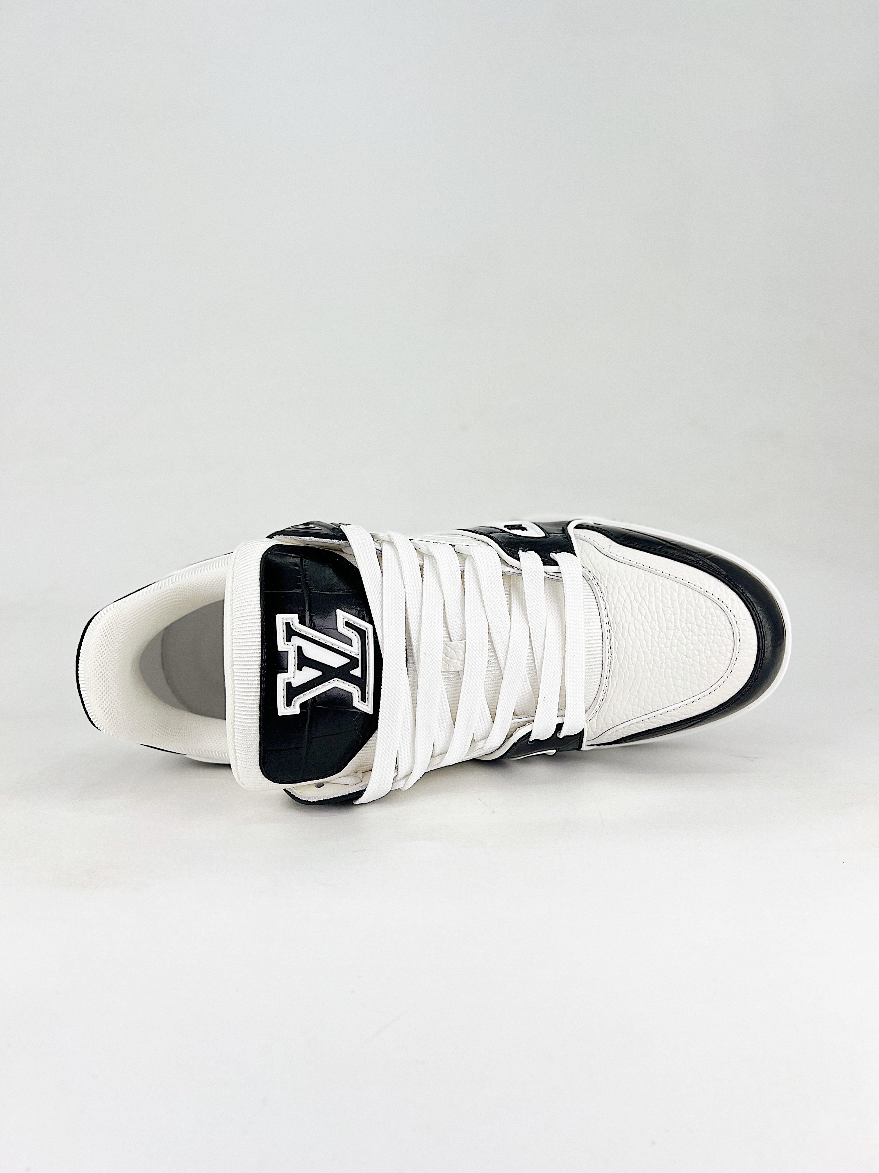 Etiquetas: LV Trainer | 黑白撞色 | 轻奢休闲 | 签名装饰 | 厚底板鞋