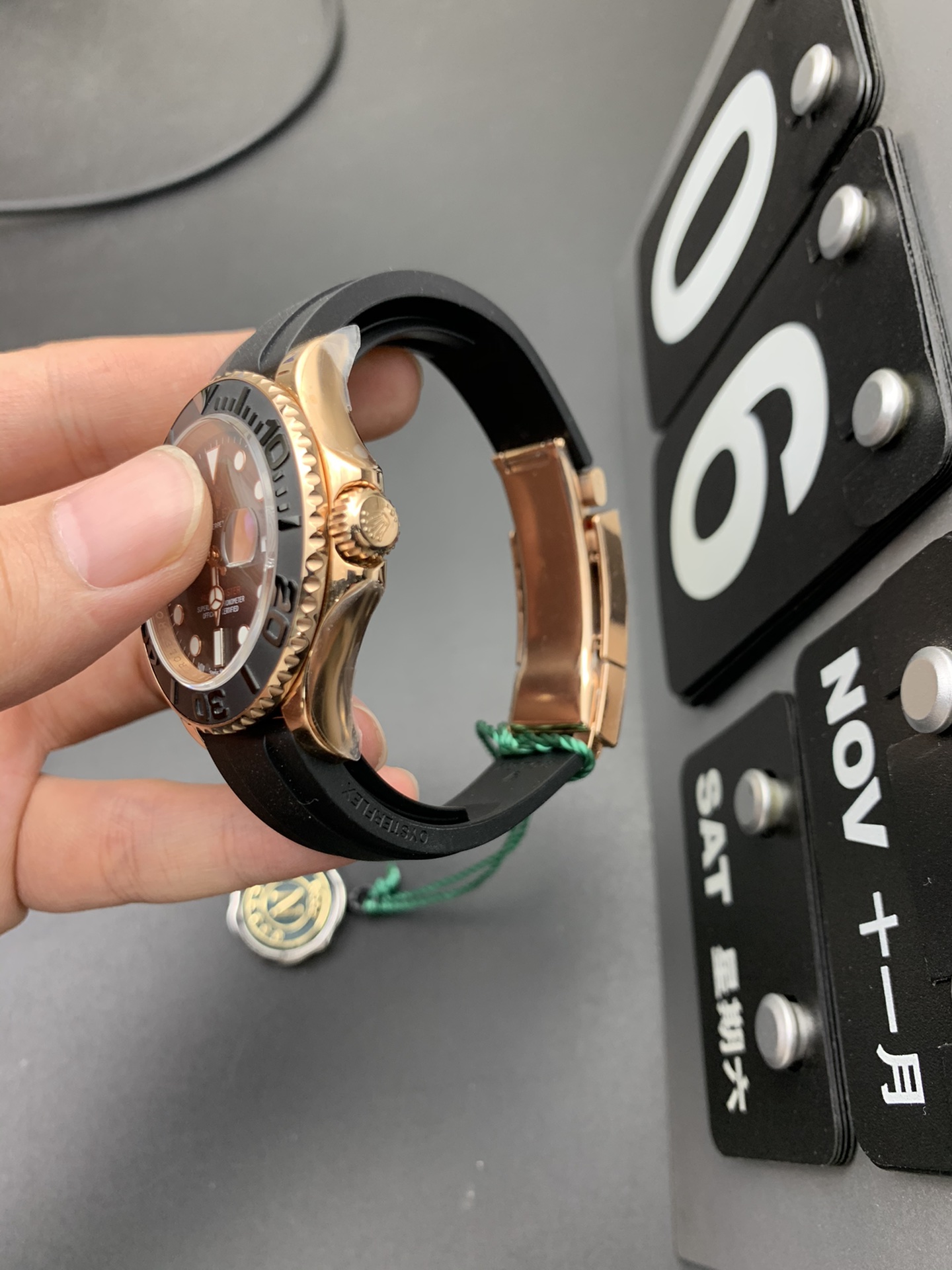 劳力士游艇名仕玫瑰金黑盘橡胶带复刻腕表