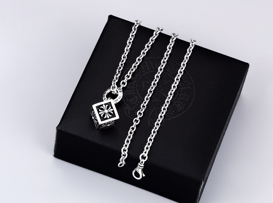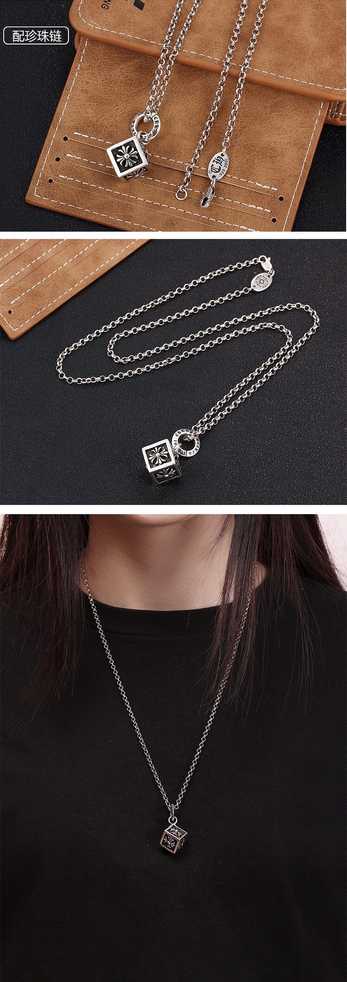 采用925纯银打造,做旧复古工艺处理,方形吊坠带有经典克罗心十字架镂空雕花设计,搭配加粗款O字银链,链条带有品牌专属标识吊牌,细节质感拉满,适配朋克、复古等多种穿搭风格,日常通勤或潮流出街皆可佩戴。